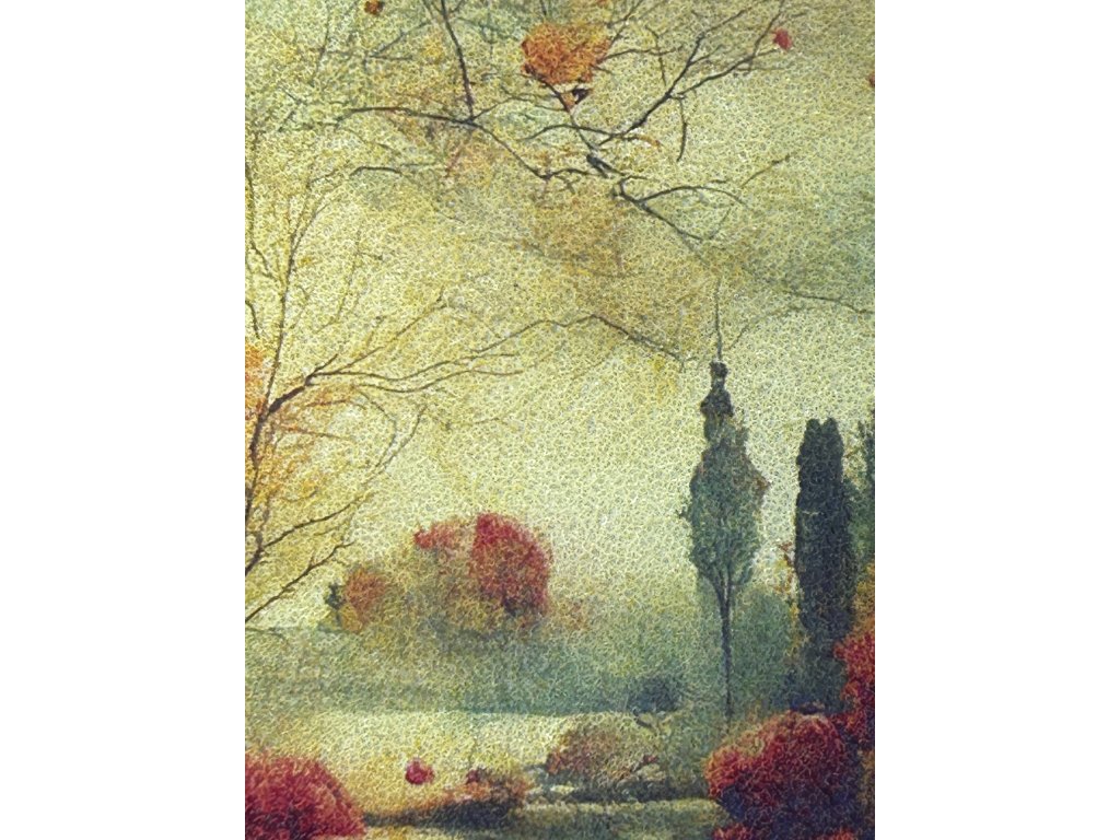 Infrapanel o výkonu 540W s korundovým hrubým povrchem - topný infraobraz s přírodním podzimním motivem. Infratopení na stěnu.